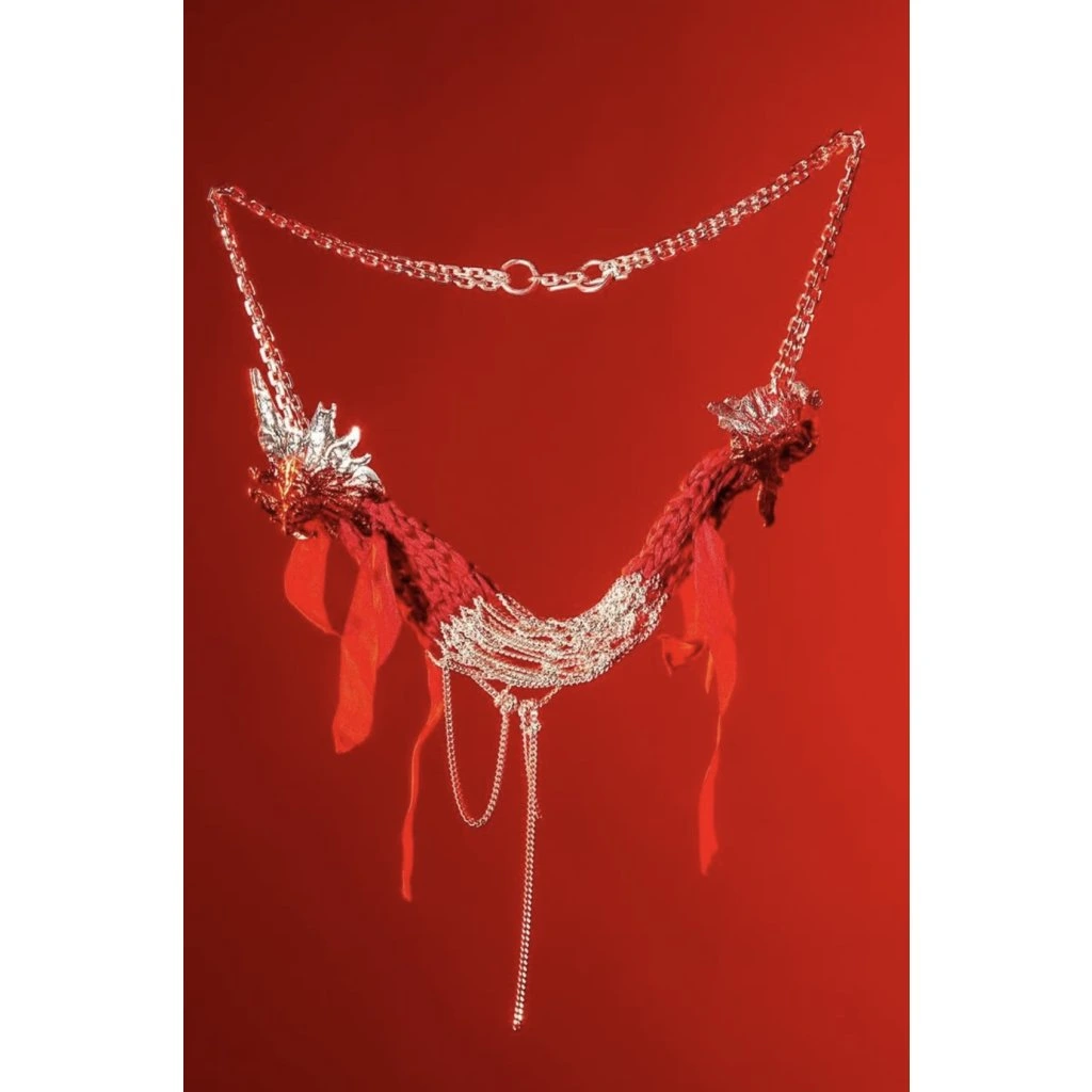materiál: stříbro, přírodní hedvábí, e-coating